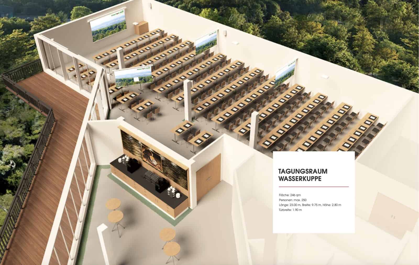 • Tagungszentrum „RhönUm“ mit sechs Tagungsräumen von 25 bis 246 Quadratmetern Größe.